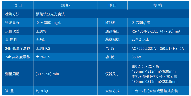 本仪器采用钼酸铵分光光度法测定水中的磷含量。在酸性介质中,水 样中的正磷酸盐与钼酸铵反应,生成黄色的磷钼杂多酸。该化合物在抗坏 血酸的作用下被选择性地还原,生成稳定、灵敏的蓝色络合物——磷钼蓝。 此蓝色溶液在特定特征波长处具有最大吸收,其吸光度与正磷酸盐浓度在 一定范围内严格符合朗伯 - 比尔定律,从而实现对水中磷含量的精确、快 速测定。