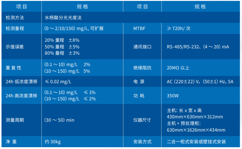 本仪器依据国家标准《HJ 536-2009 水质 氨氮的测定 水杨酸分光光 度法》设计,采用水杨酸分光光度法原理。在碱性介质中,并在亚硝基铁 氰化物的催化作用下,水样中的氨及铵离子与水杨酸和次氯酸离子反应, 生成稳定的蓝色化合物。该化合物在特定波长下具有最大吸收,通过测量 其吸光度,即可精确计算出水样中氨氮的浓度。