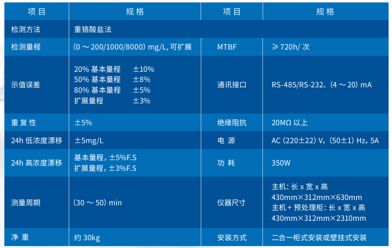 本仪器依据国家标准《HJ 828-2017 水质 化学需氧量的测定 重铬酸 盐法》设计,采用经典重铬酸钾法,以硫酸银作为催化剂、硫酸汞作为掩 蔽剂,在高温高压条件下对水样进行消解,最后通过分光光度法测定水样 的化学需氧量(COD)值。